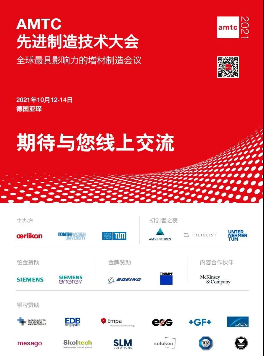 我们非常高兴地宣布,全球最具影响力的慕尼黑增材制造技术会议(MTC)随着号召力不断扩大,现更名为先进增材制造技术大会(AMTC),并将于2021年10月12至14日在德国亚琛Eurogress中心举办。来自企业、院校、政府机构及媒体行业的专家与领袖,将在这里展开为期三天的热烈讨论,思想碰撞与互动。